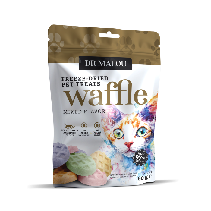 Dr Malou Liofilizowane Wafle Mięsne — naturalne, chrupiące przysmaki dla kotów: bogate w mięso, bez zbóż i konserwantów. Wspierają zdrowie, zaspokajają instynkt łowiecki i dostarczają codziennej frajdy.