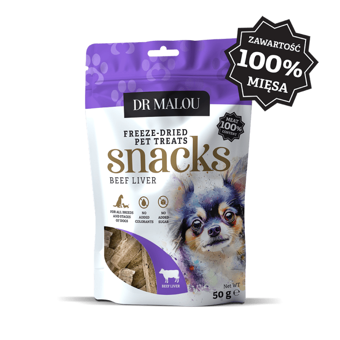 Liofilizowana wołowa wątroba to idealna przekąska treningowa oraz wartościowy dodatek do codziennego menu psa w każdym wieku. Przed podaniem można ją delikatnie namoczyć, aby ułatwić spożycie.